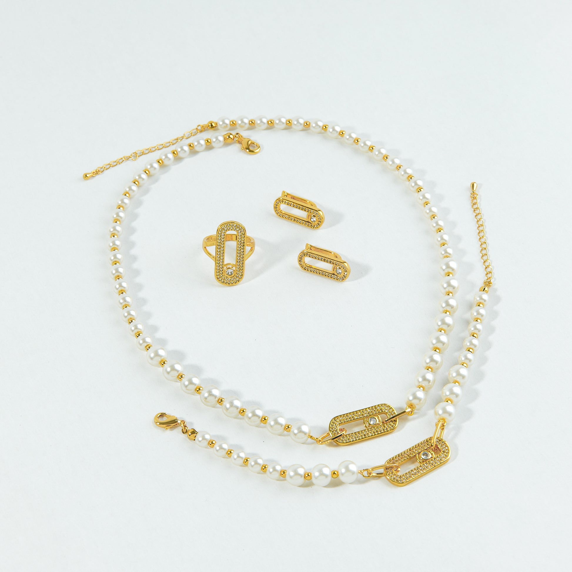 💎✨ طقم Messika 4 قطع لؤلؤ فاخر – أناقة متألقة ولمسة فخامة لا تضاهى.