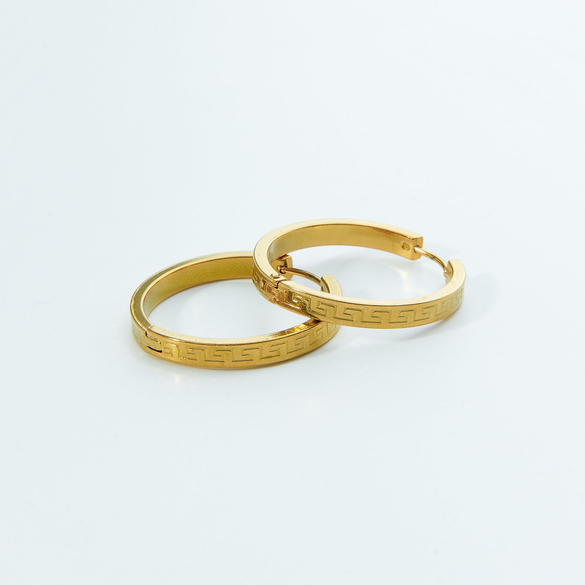 يأتي الحلق بأشكال متعددة، من الأقراط الـ Stud الصغيرة التي تبرز رأس الميدوسا بدقة، إلى الأقراط الحلقية (Hoop Earrings) الكبيرة المزدانة بنقش الغريكا، أو حتى الأقراط المتدلية التي تتأرجح بحرية.