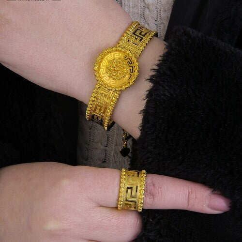 طقم فيرساتشي للإسوارة والخاتم هو اختيار من يبحث عن التفرد الذي لا يقبل المنافسة، ويجسد المزيج الأسطوري بين الفن الإغريقي القديم والترف العصري. ✨